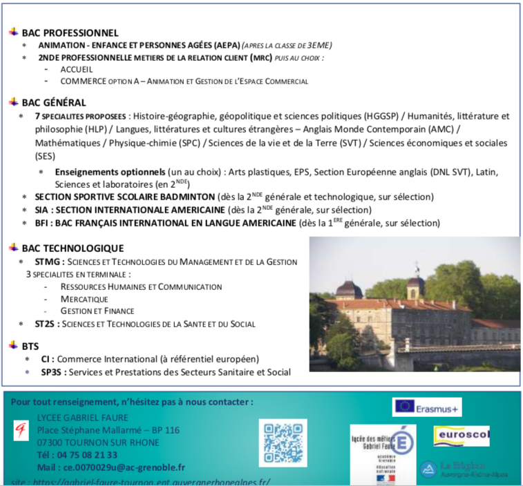 Les formations au lycée Gabriel Faure